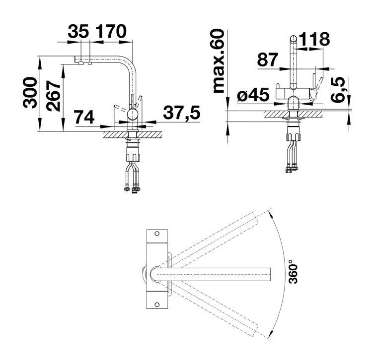 - control monomando: agua fría y caliente a la derecha, agua filtrada a la izquierda
