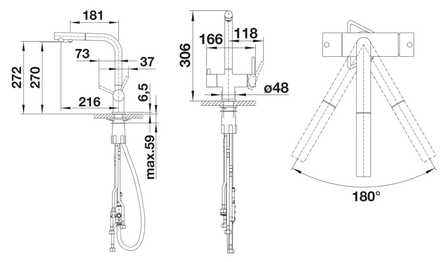 - brazo giratorio, rango de rotación 180°