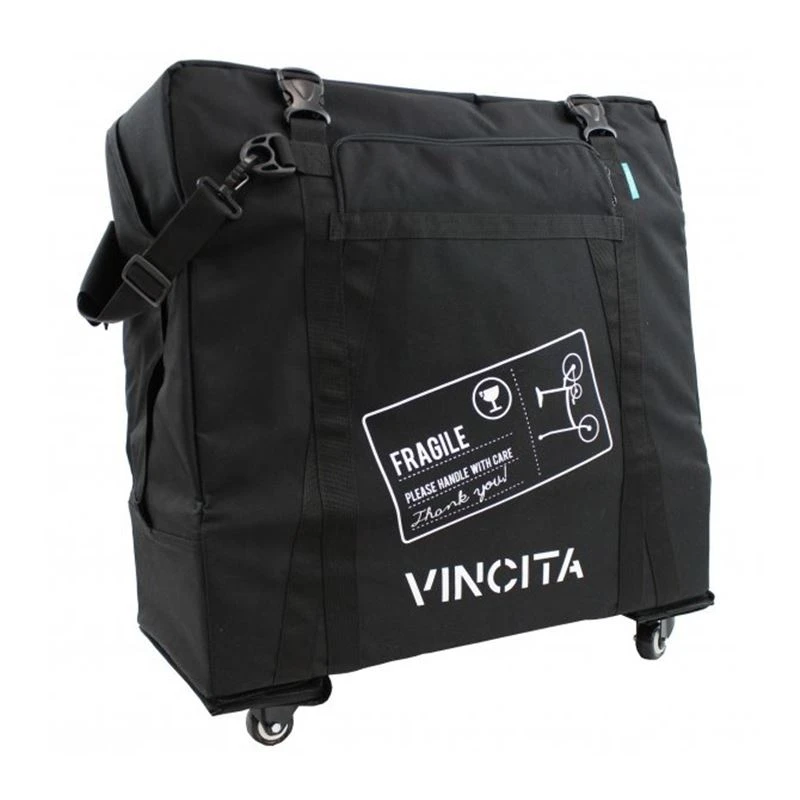 Bolsa acolchada para transportar de forma cómoda y segura bicicletas Brompton en avión, autobús o tren. Incorpora 4 ruedecillas para facilitar el manejo, que se pueden desmontar de forma sencilla y guardarlas en el interior de la bolsa. Su interior está convenientemente acolchado con foam de 5 mm, para una perfecta protección de tu bicicleta durante el viaje. La propia maleta se puede plegar para ahorrar espacio cuando no está en uso. Válido para otros modelos de bicicletas plegables compactas de 16.