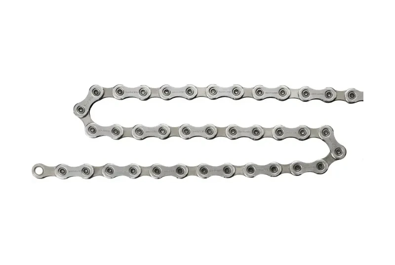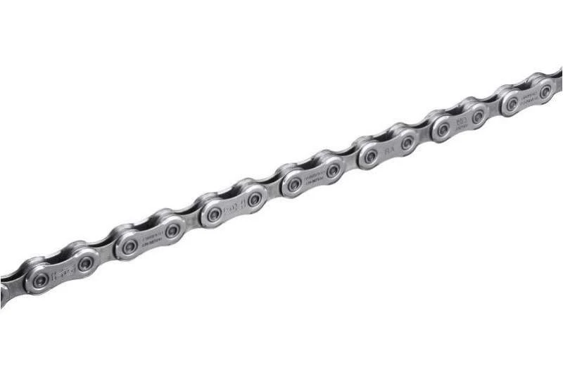La cadena Shimano Deore XT M8100 12v se ha rediseñado con una mayor placa interior que mejora la retención de la cadena y con los bulones cromados, estos mejoran aún más la durabilidad y permiten unos desplazamientos más suaves por el cassette.