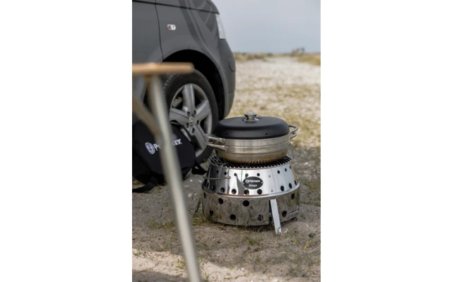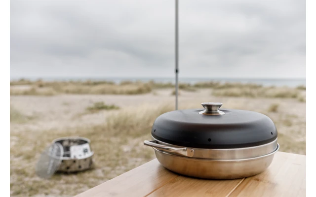 Ahora es el momento de ponerse a cocinar: en el horno de camping de acero inoxidable de tres piezas podrá hornear guisos cubiertos de queso, crujientes panecillos y jugosos pasteles, independientemente de lo que esté haciendo en la carretera con su autocaravana, furgoneta, etc. El horno de camping se utiliza en la mesa de gas Petromax, en la placa de cocción para autocaravanas y sobre las brasas.