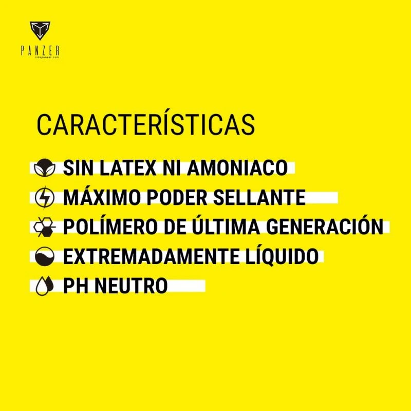 Su composición NO CONTIENE LATEX NI AMONIACO, y su Ph es Neutro, con lo que se evita cualquier tipo de reacción adversa ante el contacto con los materiales empleados actualmente en materia de neumáticos, fondos de llanta para tubeless y sistemas insert de protección.