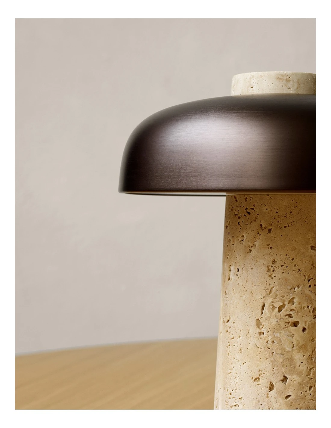 El diseño de Reverse juega con estructuras geométricas y materiales que se inspiran en las mesas de mármol italiano de la década de 1970.