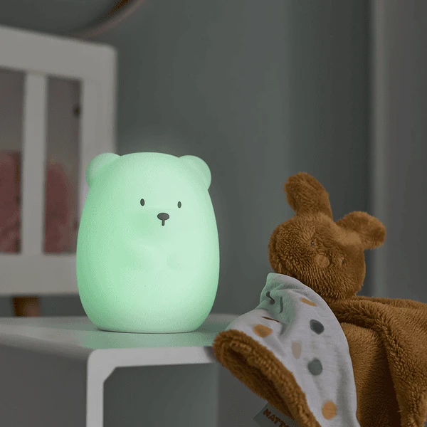 - La luz nocturna purista con forma de oso está hecha de suave silicona y puede ajustarse en diferentes modos.