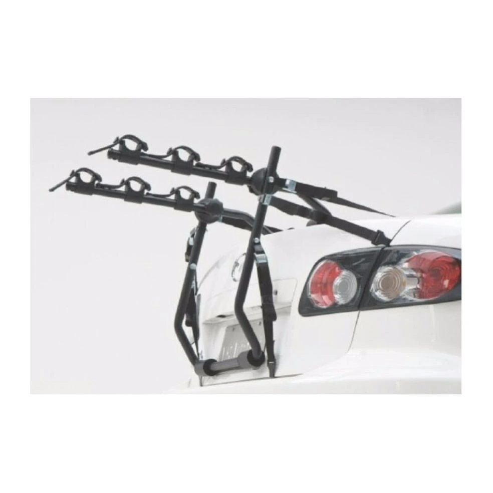 Este soporte para 3 bicicletas se adapta al baúl de su auto de forma fácil. Se adapta a la cajuela de la mayoría de los vehículos, cuenta con un sistema de soporte de amarre doble que asegura y protege a sus bicicletas de manera individual. Brazos extra largos para acomodar fácilmente hasta 3 bicicletas, Listo para ponerlo en su auto. Diseño más cómodo y reforzado. Sujetadores individuales. Más apoyos y protectores para la bicicleta.