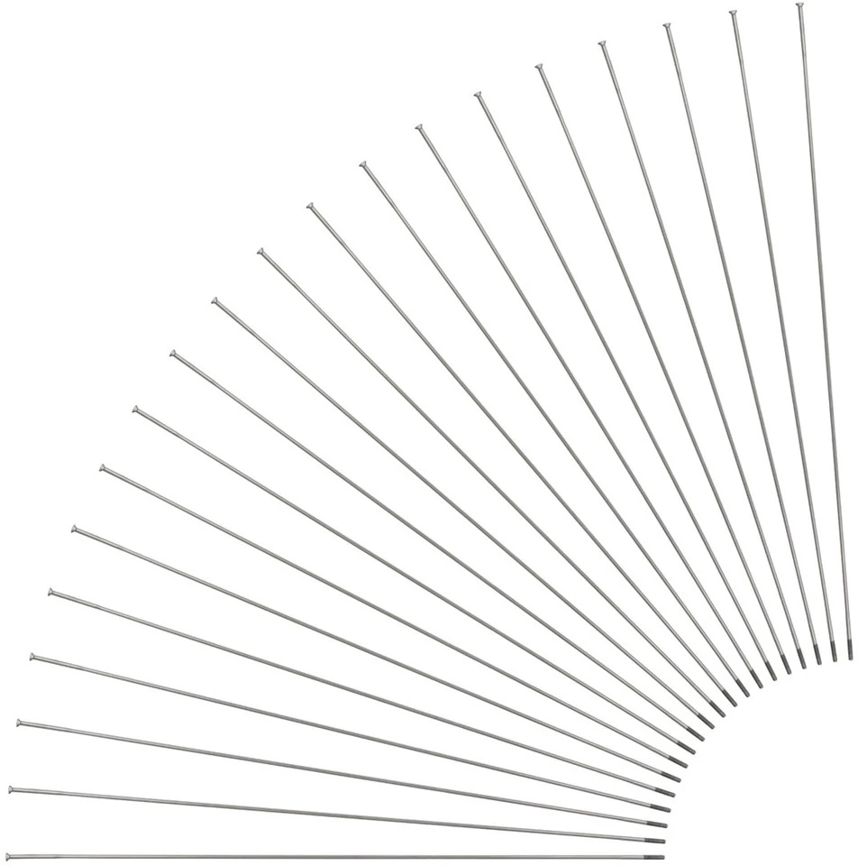 El radio Race – aquí en la versión de cabeza recta y en paquete de 20 – es el radio conificado más popular de Sapim. De fácil tensión. Menos torsión y menos elasticidad son características de Race. Además se caracteriza por su mejor absorción de impactos en comparación con los radios no conificados, gracias a su delgada parte central.