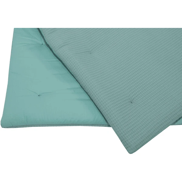 Sólo se han utilizado tejidos de algodón de alta calidad, sometidos a pruebas de sustancias nocivas, para la elaboración de la manta para gatear o el cojín del corralito. Están certificados según la norma Oeko Tex 100 y cumplen todos los requisitos de la clase de producto I para niños y bebés. Para cumplir con estas elevadas normas de higiene, la manta de juego se puede lavar en cualquier lavadora de tamaño normal.