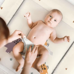 Hermoso y cómodo cambiador acolchado en delicadas sábanas design con una práctica suspensión. El rizo impermeable hace que el cambiador sea higiénico y agradablemente suave.