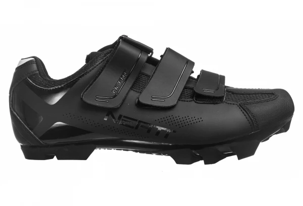 Las zapatillas de MTB Neatt Basalte Race Black le permiten cubrir las alegrías y las ventajas de las zapatillas para remos automáticos a un costo menor. La construcción de cuero sintético en gran parte trasera mantiene tus pies frescos. La suela de fibra de vidrio es lo suficientemente rígida como para aumentar su rendimiento de pedaleo, pero sigue siendo muy cómoda. Detalles: Los tacos integrados en la suela asegurarán una gran tracción durante las fases de caminata. Para garantizar un soporte óptimo, los zapatos Neatt Basalte están equipados con 3 bandas de velcro. La parte delantera del pie tiene un refuerzo para protegerte de posibles golpes. Elementos reflectantes en la espalda. Plantilla transpirable y extraíble. Espacio para cuñas con dos tornillos. Peso: 380 g (un zapato en talla 42). Compatible con todos los tacos MTB (2 tornillos)